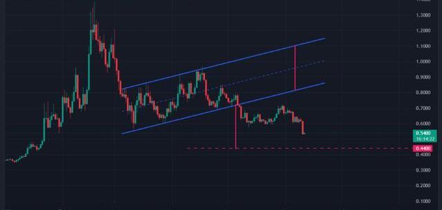 如果价格从当前水平大幅反弹并收回0.6美元的支撑位,则该观点将失效。然而,目前这似乎不太可能。