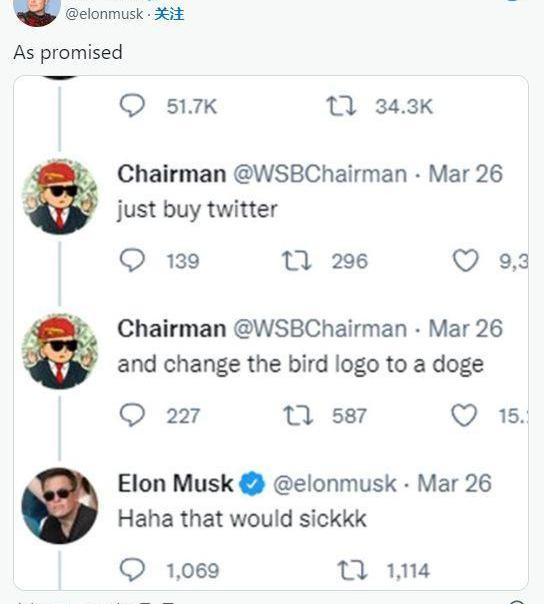 马斯克还在推特上发布了一张旧聊天的截图,并说,“正如所承诺的那样。”