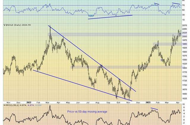 Yates表示:“黄金的技术图很有趣,我们现在正面临2050美元附近的明显上方阻力位,这代表历史高点,并且RSI出现轻微的看跌背离。因此,我们可能会看到从这里开始出现某种小幅修正或整合。我认为,在明确突破这一水平之前可能还为时过早,也许美联储最后一次的加息可能会引发回调,因此任何修正都应该抱紧拳头购买。”