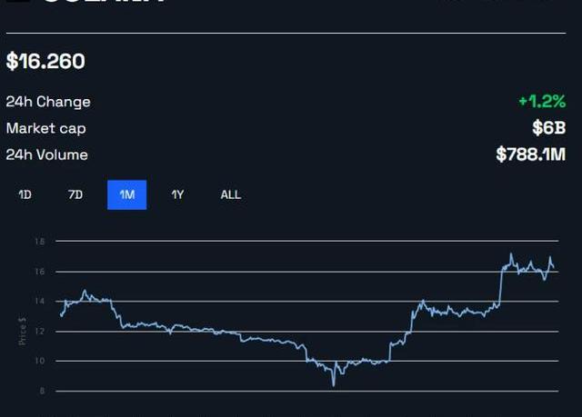 在撰写本文时,SOL价格当天上涨了一个百分点左右,交易价格为16.26美元。然而,它未能增加收益,使其在1月9日升至该水平。