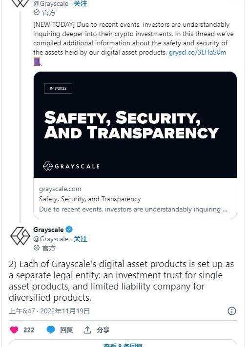 这家投资公司在11月18日发布的一条Twitter帖子未能消除人们的恐惧,称安全风险是其无法公布其钱包的原因。