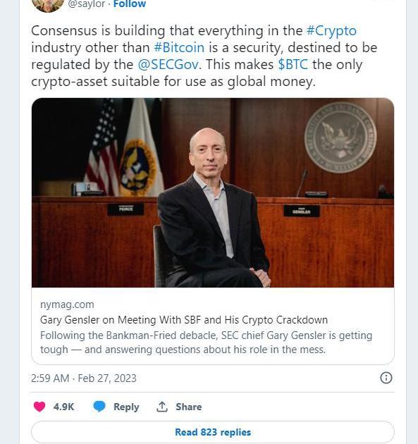 对美国证券交易委员会和Gensler对加密法规的看法的反应