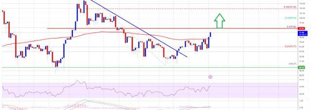 莱特币价格现在交易价格高于95美元和100条简单移动平均线。从好的方面来看,直接阻力位在98美元区域附近。它接近从105美元高位回落至90美元低位的50%斐波拉契回撤位。