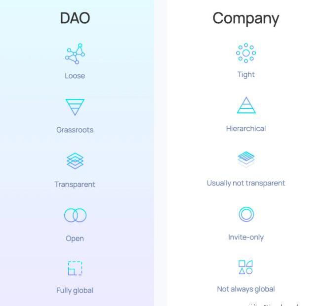 尽管存在多种DAO,但它们都具有相同的元素,这些元素将它们与传统组织区分开来,并使它们能够公开、负责,并平等地分配在它们内部创造的价值。