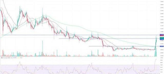 Coingecko给出了过去24小时内狗狗币的当前价格上涨28%。这延续了高成交量的反弹。过去一周,狗狗币价格暴涨了160%左右。上行势头强劲,越来越多的交易者再次加入模因硬币的潮流。虽然今天广泛的加密市场上涨了1%左右,但根据CoinMarketCap数据,meme代币的市值上涨了20%以上。