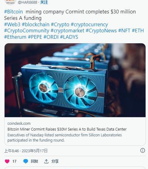 CormintDataSystems是比特币挖矿行业的一家初创公司,在A轮融资中筹集了3000万美元。该轮融资由其总裁共同牵头,将用于在得克萨斯州斯托克顿堡建设数据中心,处理能力为每秒2.4exahashes。