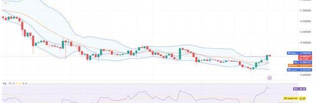 从扩展的布林带中可以明显看出市场波动,上轨为17美元,下轨为13.6美元。较低的波段作为AVAX价格的支撑位。此外,相对强度指数(RSI)得分显示出积极迹象,今天的指数为40,表明市场购买活动有所增加。