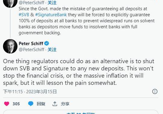 因此,希夫认为美联储应该关闭受影响的银行并停止进一步存款,以作为对其他银行业的警告。