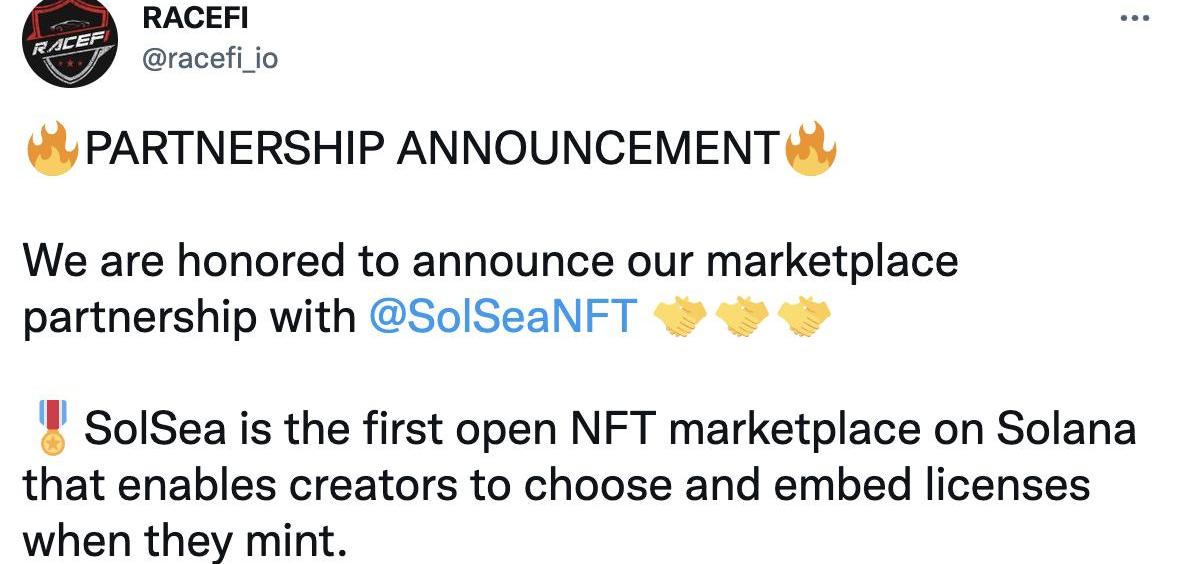 巴比特讯,12月23日,Solana上AI/ML赛车游戏RaceFi宣布与基于Solana的NFT平台Solsea达成合作。