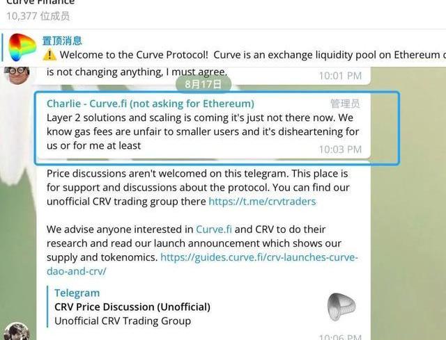 8月17日,Curve团队的Charlie在电报群内回复网友信息时提到: