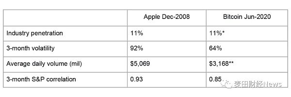 如上图所示,近期民调显示,11%的美国人拥有比特币,这与2008年12月智能手机普及率基本持平。在价格波动和比特币与标普500指数之间的关联性中也可以发现类似的趋势。