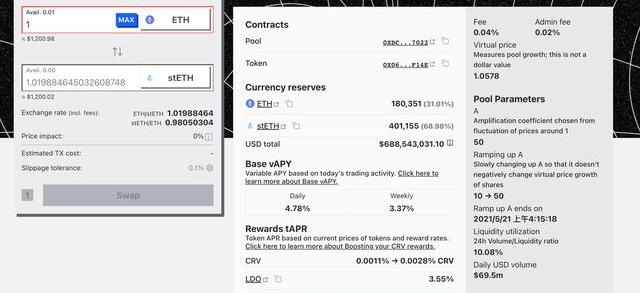 一巨鲸从Curve的stETH/ETH交易对合约中提取8.4万枚ETH,导致目前stETH/ETH交易对流动性池出现脱钩现象,stETH占比达68.98%。