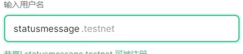 新用户可在https://wallet.testnet.near.org页面中注册新的TestNet钱包,只需要输入用户名即完成注册,例如statusmessage.testnet。