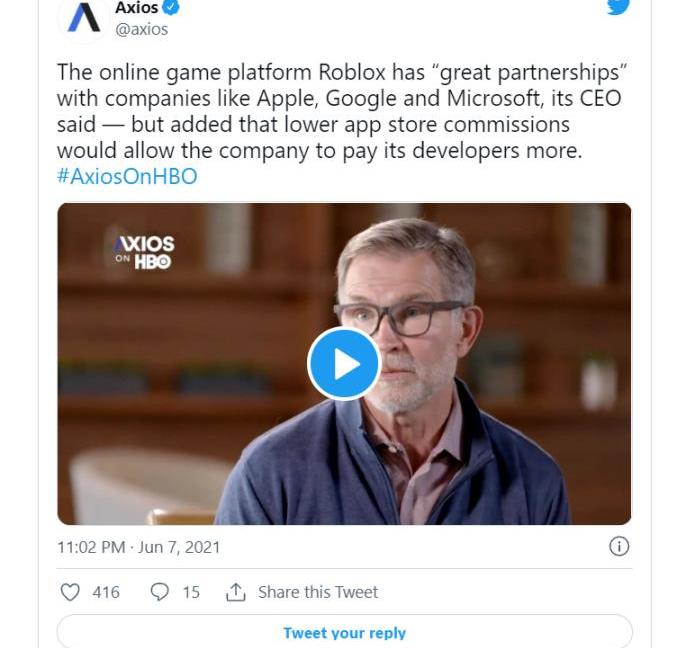 Roblox的CEO曾公开表示,如果苹果和谷歌降低他们的分成比例,他可以支付给开发者更多的钱,他们的平均分成比例在30%左右。
