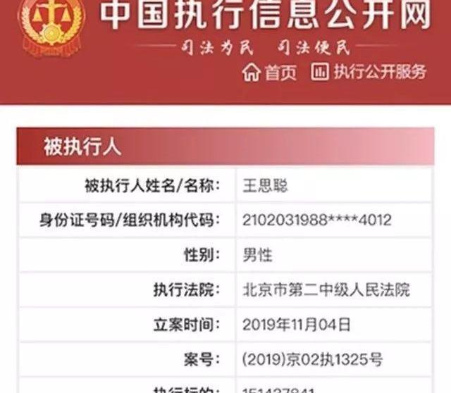 昨天,王思聪又一次上热搜了,不过相比以往这次并不是啥好事,据中国执行信息公开显示,王思聪被北京市第二中级人民法院列为执行人,执行标的151437840.0,约1.5亿。