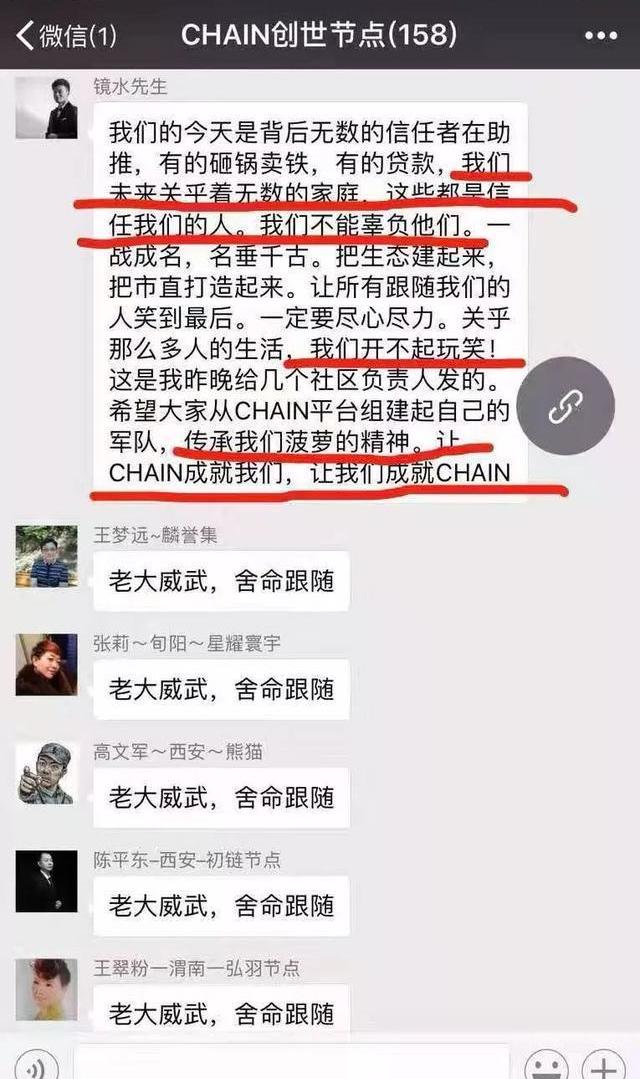 受害者提供的项目方蛊惑他们继续投资的聊天记录