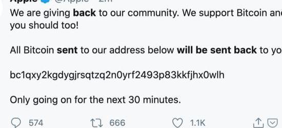 福克斯新闻网报道称,当地时间15日,从前总统拜登到现任大公司负责人,在推特上人气颇高的多个著名账号均遭到黑客攻击,发布了募集比特币捐款的推文。福克斯新闻网报道称,15日有人在推特上发布推文称,“我在回馈社区。所有寄往以下地址的比特币将加倍退回!如果你寄1000美元,我就回寄2000美元。只做30分钟。随后,这些推文附上比特币钱包的相关代码。”