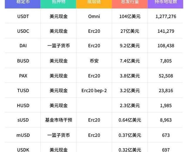 目前市场中的稳定币主要可以通过发行机构及应用场景分为三类,第一种是中心化机构发行的稳定币,以USDT,USDC,PAX为首,第二种为中心化交易所发行的稳定币,代表的有火币HUSD、币安BUSD以及USDK等,第三种是以去中心化金融DeFi以锚定机制发行的稳定币,代表的有Dai、USDX等,三种类型因其出身不同,则应用场景与方向已然不同。