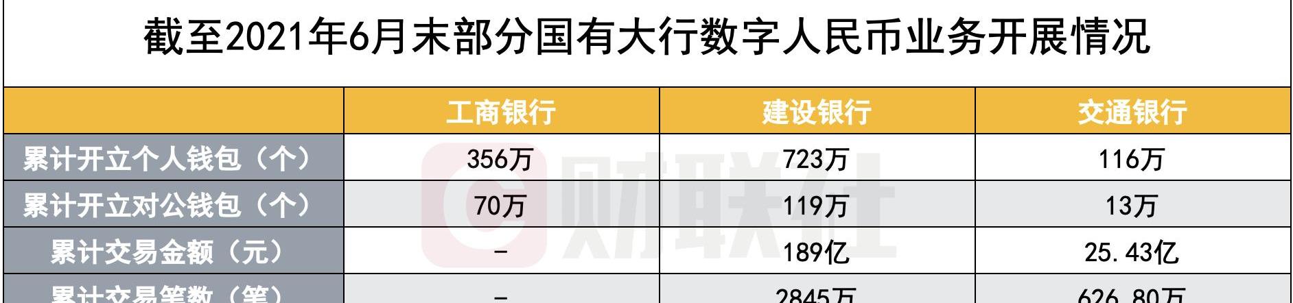 在交易量方面,建行累计交易笔数达到2845万余笔、交易金额约189亿元;交通银行数字人民币累计交易金额达25亿元、交易笔数近630万笔。