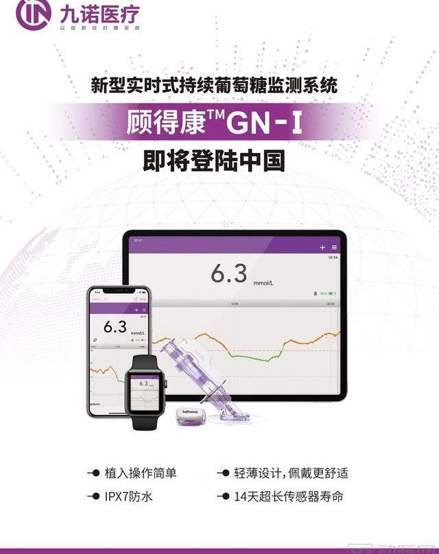 2021年11月3日,持续葡萄糖监测行业领军企业九诺医疗宣布,公司旗下“顾得康”GN-I持续葡萄糖监测系统获得国家药品监督管理局审批上市。