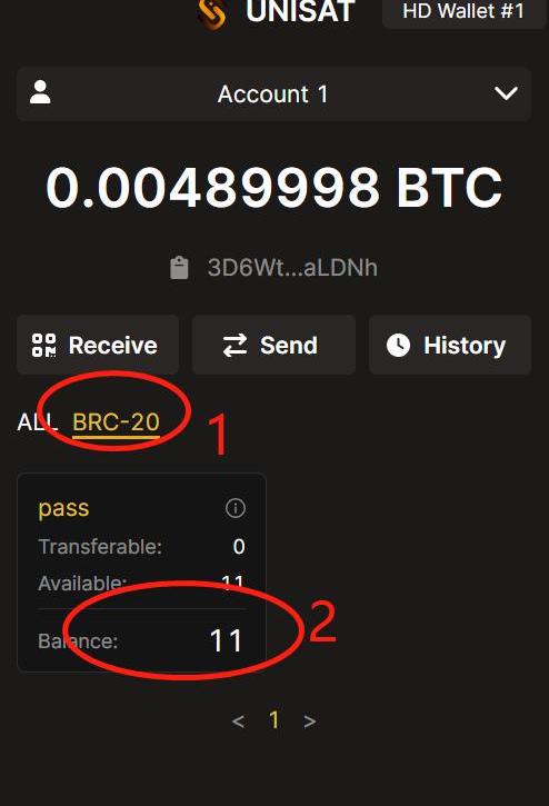 2、把transfer铭文发送给其他地址的操作步骤:再次打开Unisat钱包,点击brc20,再次点击transfer