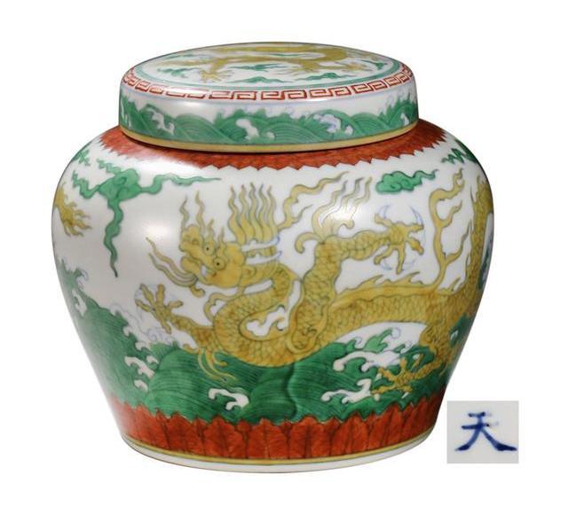 1、清乾隆黄地青花穿花龙纹天球瓶