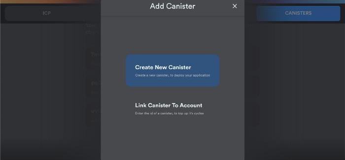 接下来,导航到右上角的CANISTERS选项卡。您应该会看到以下屏幕:
