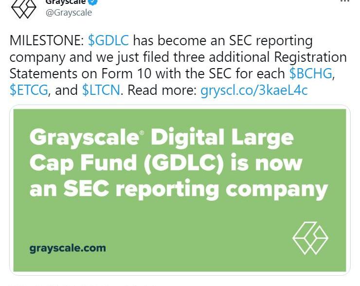 此外,Grayscale还宣布,它已经代表GrayscaleBitcoinCashTrust、GrayscaleEthereumClassicTrust和GrayscaleLitecoinTrust向美国证券交易委员会公开提交了另外三份10号表格的注册声明。