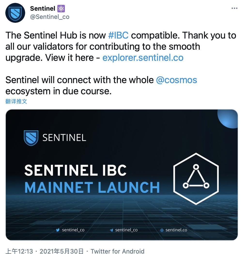 Cosmos生态dVPN项目Sentinel发推称,SentinelHub现已兼容IBC,Sentinel将在未来适当的时机与整个Cosmos生态系统连接。据悉,Sentinel已在CosmosSDK上铸造主网创世区块,SENT代币现已变更为DVPN。Sentinel是定位于Web3的入口,是Cosmos生态内的dVPN项目。