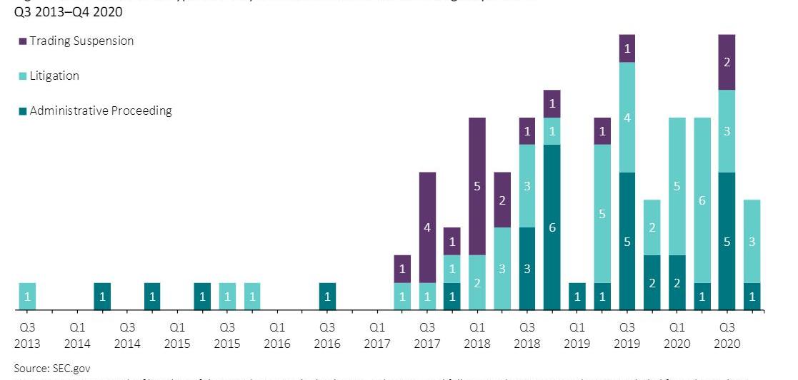 图|2013Q3-2020Q4SEC加密货币执法行动及终止交易数量