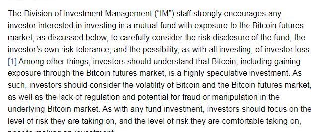 5月11日,其投资管理部的公开声明表示,强烈鼓励有兴趣投资于比特币期货ETF的投资者参与,但要仔细考虑风险披露,避免因盲目投资而蒙受损失。