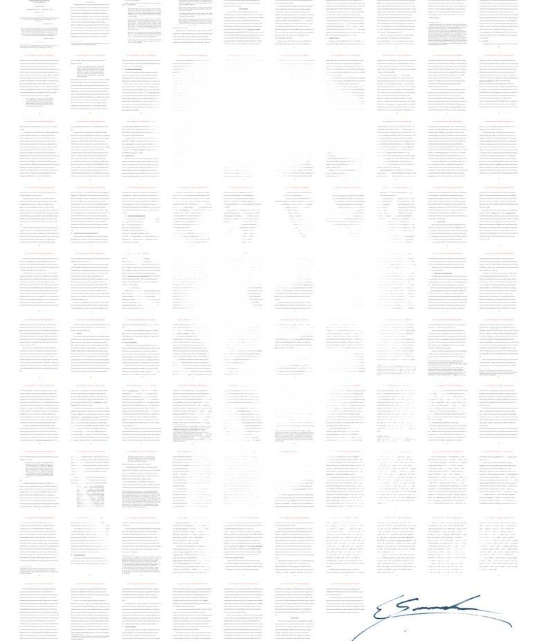 该作品以2015年美国法院裁定棱镜监控计划违法的”隐私胜利”判决书作基底,将之合成为名摄影师普拉顿替斯诺登拍摄的肖像,并在右下角附上他本人的签名。