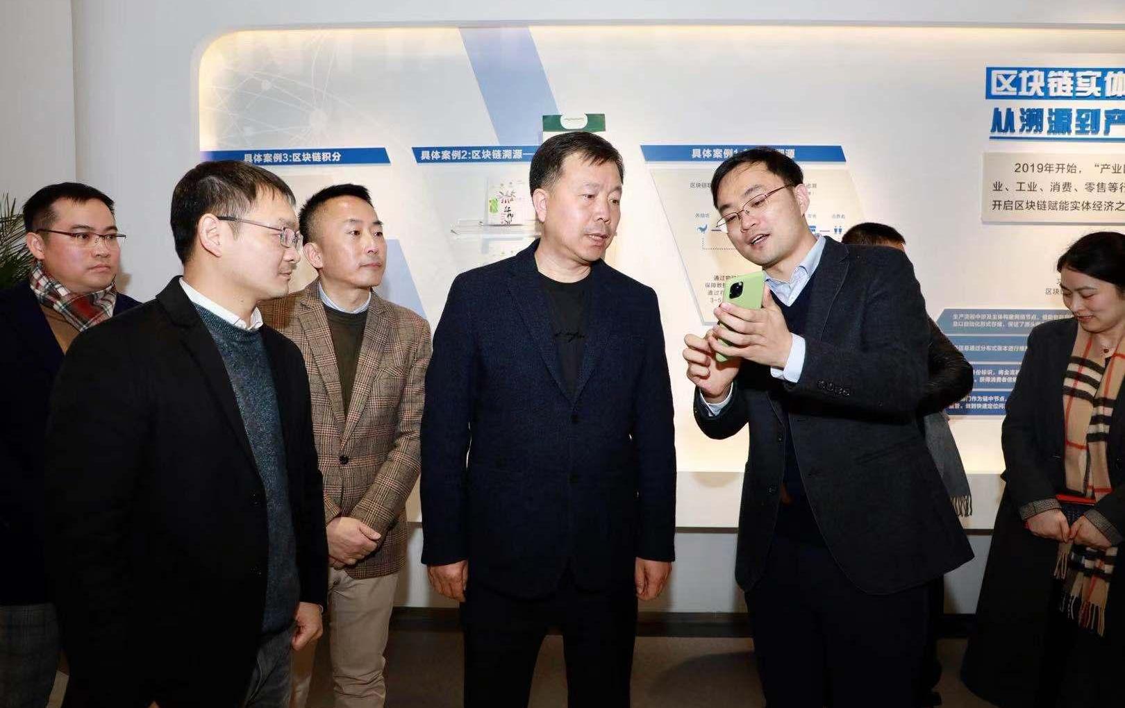 巴比特副总裁马千里向张书记介绍区块链应用产品