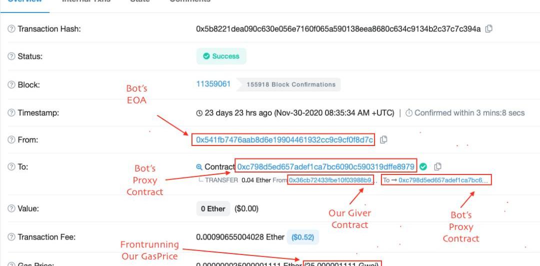 那要看你怎么看了。我们签了一份新合约,还有一个只有我们知道的秘密。很明显,我们发现的两家Frontrunning者都在交易池中操作所有的交易,从他们的利润来看,他们做得很好。