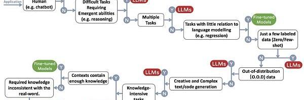 对于到底是选择只经过预训练的大模型LLM,还是在此基础上经过特定数据集微调后的较小模型问题,《在实践中利用大模型的力量》这篇论文给出的答案是具体情况具体分析,我们可以参照这张决策流程思维导图来获得一些启示。