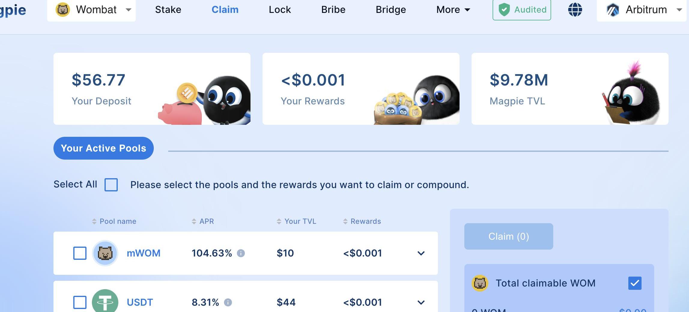 通过Magpie,WOM持有者可以将token转换为mWOM以获得更高的收益。这有利于持有者获得更多收益: