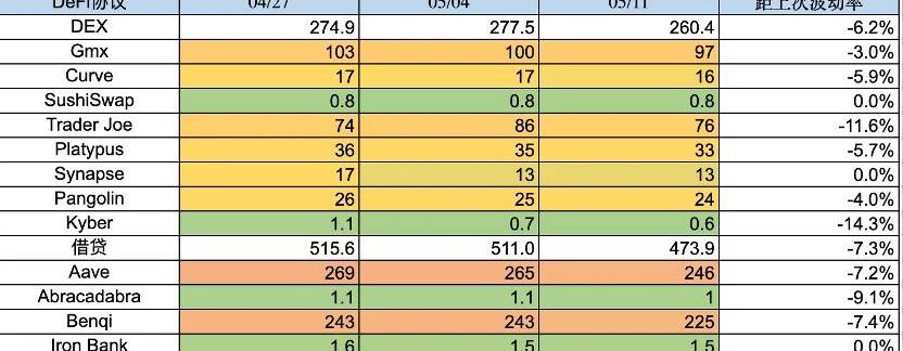 本周?TVL?总量继续下跌?2.1?b,下降幅度为?4.3%?。本周ETH链占比与上周基本持平,略微下降到?58.08%?,降幅~?0.6%?,近几个月的大趋势看?eth?生态的?TVL?在稳定上升。