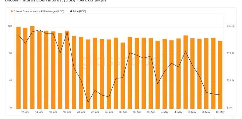 货币流动性改善。美国?4?月?CPI?通胀弱于前值和预期,市场抹去?6?月加息预期,押注最早可能在?9?月转向放松政策。距离美国财长耶伦警告的债务上限日还有三周时间,市场恐慌情绪蔓延。技术性违约可能会刺激数万亿美元的资本从风险资产涌入相对安全的美国国债。美股横盘震荡,加密市场遭遇主要做市商撤离,走势弱于美股。