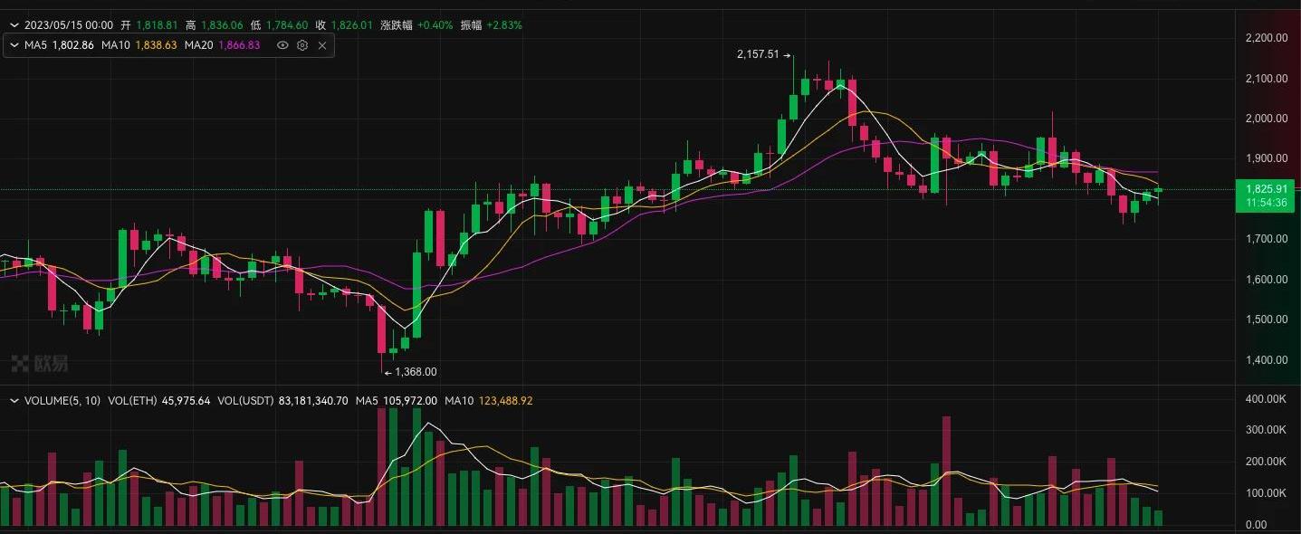 二级市场方面,目前?ETH??价格短时可能继续盘整,支撑位1800美元,阻力位1860美元。