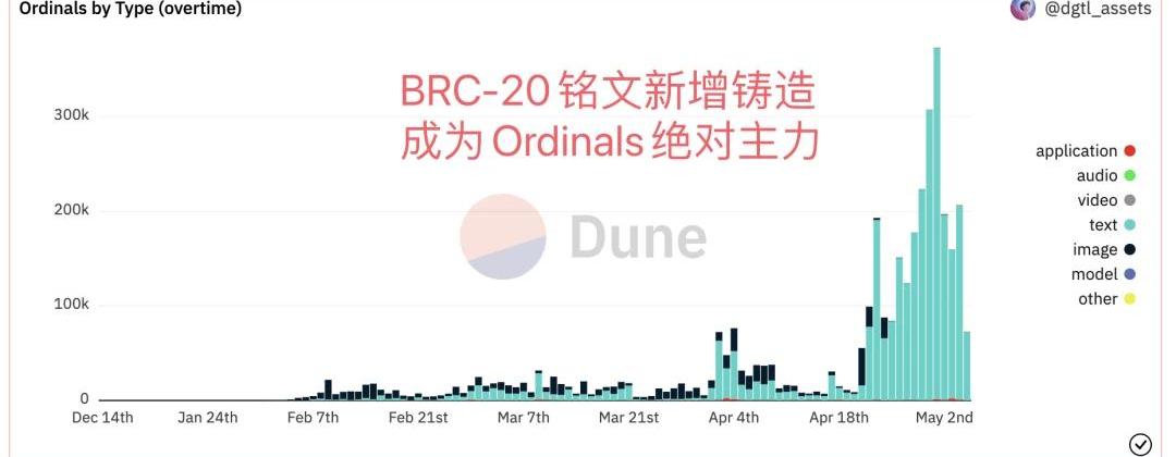 随着币圈的发展,圈内对信息的敏感度变高,炒新不炒旧已成为常态。减半背景虽然并不能实际上对边际供应量产生较大改变,但是叠加?BTC-NFT?和?BRC-20、闪电网络等一些新的变量后,或许能焕发出新的生机。22?年?7?月我曾写过一篇《比特币和美股的相关性是一张纸吗?》,当时就提到“比特币所表现出的各种叙事线是在不断转化的..数字黄金、投机属性、商品属性、证券属性、避险资产等..多维的叙事面是对抗比特币熊市最好的良药”。如今,我们又看到一条比特币可以承载的新叙事——ordinals。