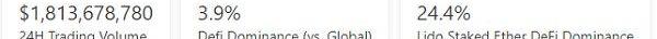 2、过去24小时去中心化交易所的交易量18.13亿美元