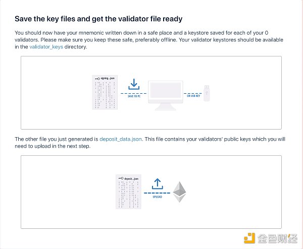 5.这个操作启动台,也就是这个操作网页会帮每个验证者创建密钥,密钥会保存在密钥库,验证者需要把密钥上传,也就是其中的generate keys和upload validator阶段。