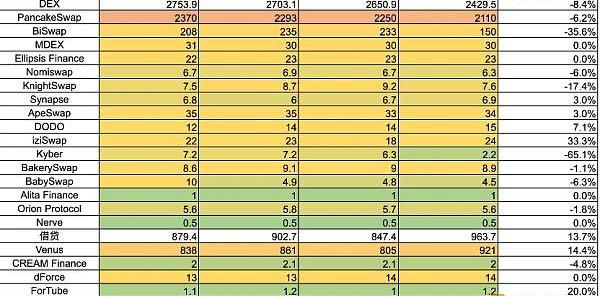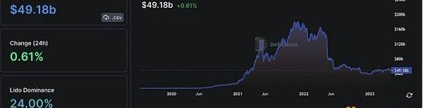 本周?TVL?出现?1.6?B?的下跌,下降幅度为?2%?。本周?ETH?链占比同样下降,从上周的?59.33%?下降到?58.8%?,降幅~?0.5%?,但近几个月的大趋势看?eth?生态的?TVL?在稳定上升。