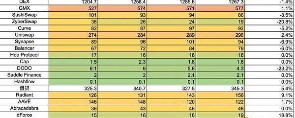 从近七日的数据看,在以太坊二层网络的核心公链中,Optimism?本周下跌为?1.9%?,Arbitrum?上涨?1.65%?,Polygon?下跌?1%?,Avalanche?下跌?2.87%?。