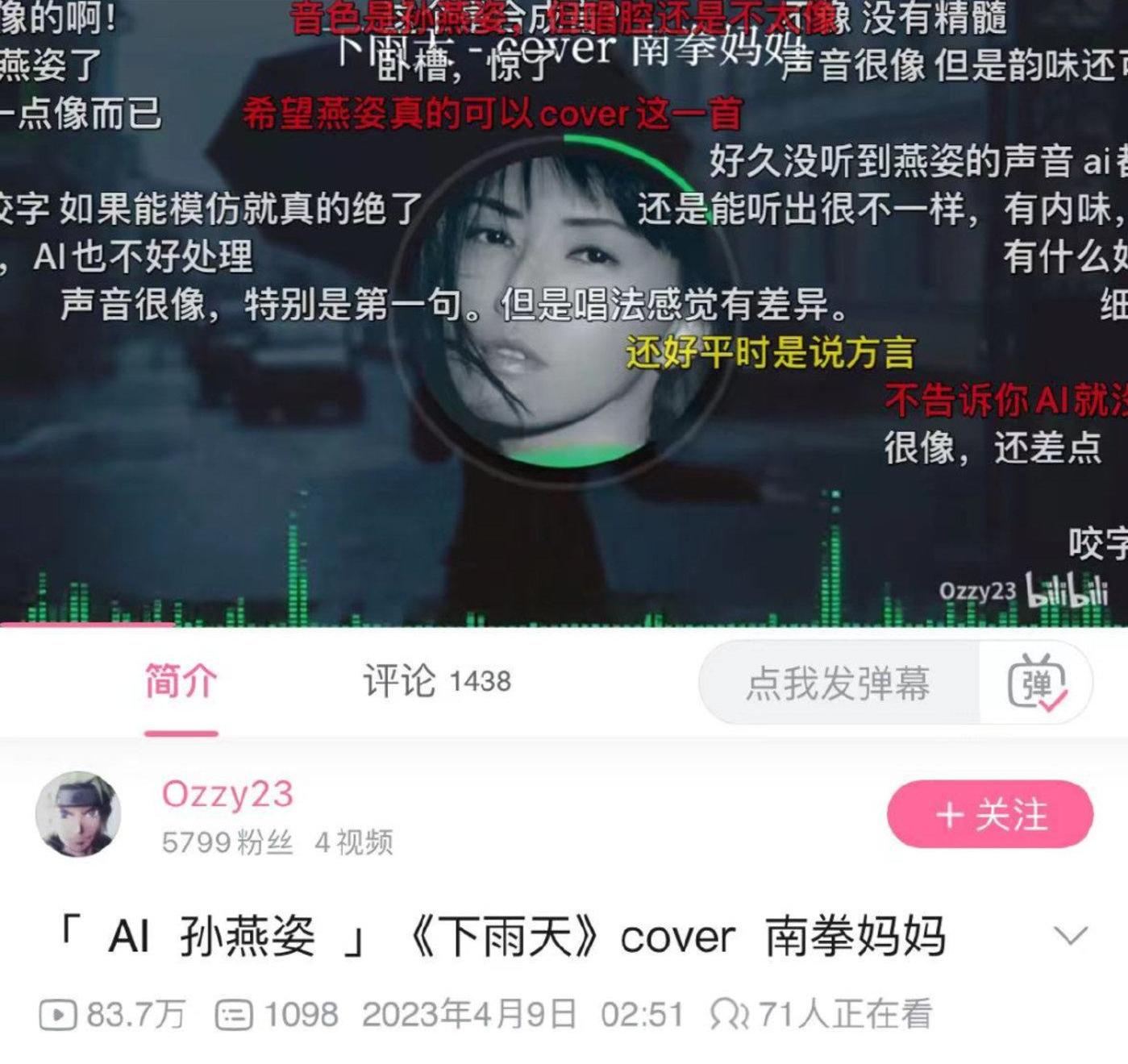 反观国内,目前未曾有作为主角的音乐人出现表态,网友们不仅自发性将喜爱音乐人的声音与喜爱经典歌曲做结合,还传授乐迷们如何制作生成这类AI音频。但随着大量音乐人的声音被使用,以及克隆音乐人歌曲的传播,未来关于“AI歌曲侵权”的命题必然会被公开提出与处理。