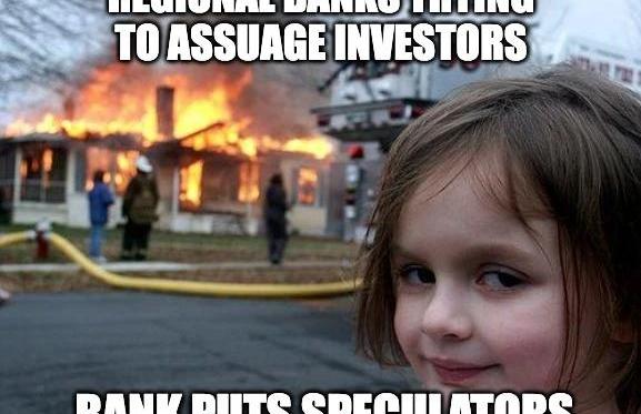 虽然这观点可能不受欢迎,但我们认为银行业危机已经从存款外逃演变为由恐慌引发的股权负面影响,现在又演变为投机者激进做空以增加银行挤兑和股价崩盘的可能性,当前的价格走势在很大程度上与日常基本面脱钩,但对于投机攻击来说,强制下行带来了丰厚的报酬。