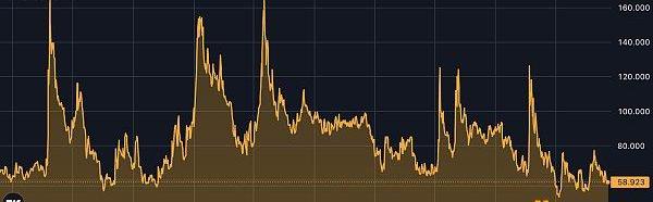 加密货币有自己的本地链上市场恐慌指数基元。一个受欢迎的模仿VIX的衍生品平台是CVIFinance,制造商为加密波动率指数,该指数跟踪以太坊和比特币的隐含波动率,与其传统金融类似。该指数在SVB/Silvergate/Signature时代之后一直在下降,目前交易水平仅在牛市之前,突破FTX前的下界62.80美元。