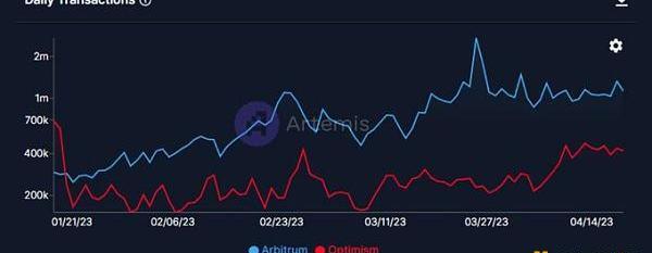 值得注意的是,Optimism的交易活动显著激增,缩小了两者之间的差距。