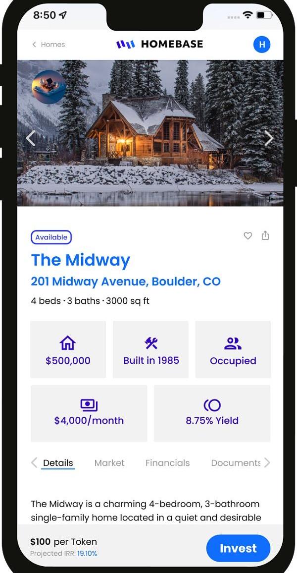 Homebase是一个房地产代币化平台。通过Homebase,用户可以以低至100美元的价格投资于产生租金的住宅房地产。