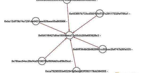在资金网络上这五个地址形成链式结构,b?8?c接收来自这两个地址的?bnb,作为?gas?费用,并进行?farm?操作获取?era?代币,并将获取的?era?代币,转给尾数为?ba?6?这个地址。